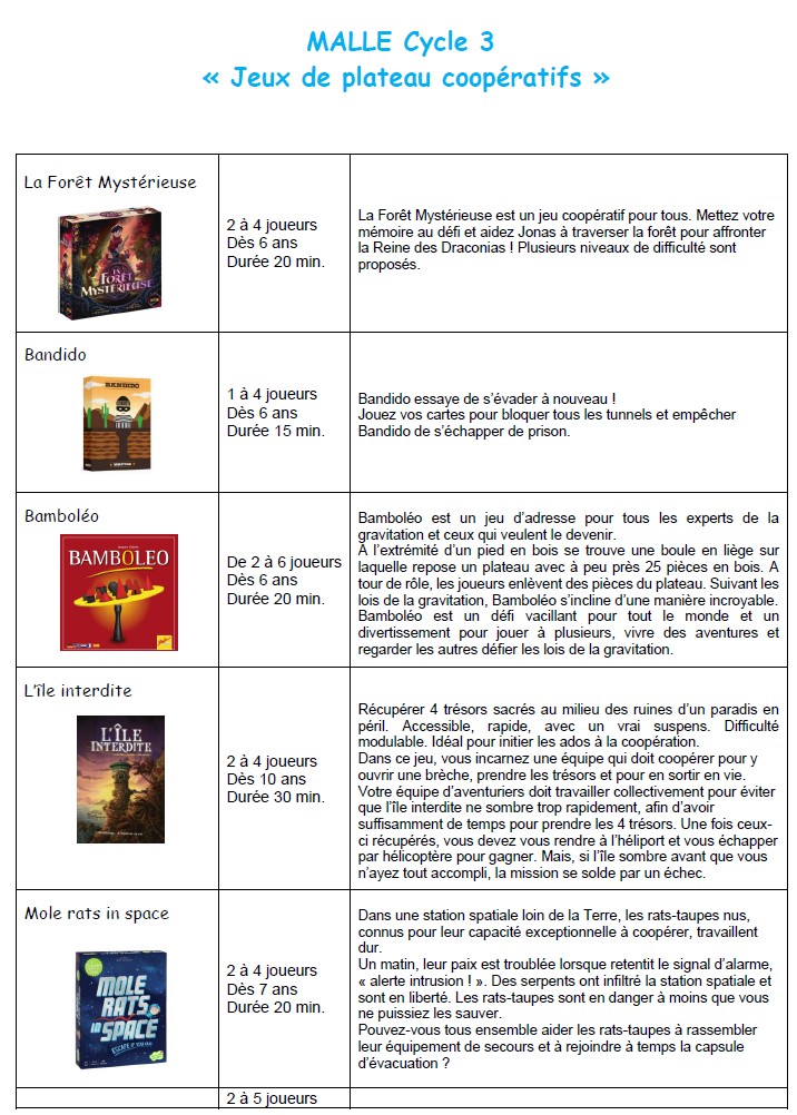 Malle 20 : Jeux de plateau, CYCLE 3